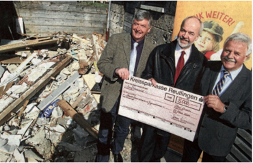 Bereits im Vorstandsbericht 2013 wurde das Projekt „Werkstatt“ vom Jugendhaus Bad Urach vorgestellt. Das Jugendhaus in Bad Urach baut das Bahnhofsnebengebäude um, damit es für praktisches und kreatives Arbeiten genutzt werden kann. Am 26. Februar 2014 wurde ein Scheck über 5.000 EUR an die Stadt Bad Urach übergeben.